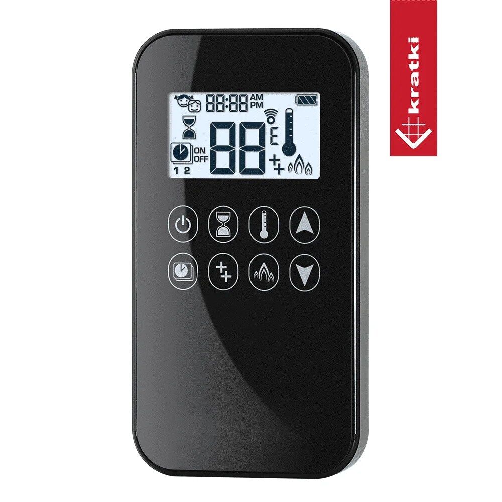 Thermostatic control: full operation via a touch radio remote control with a built-in thermostat.